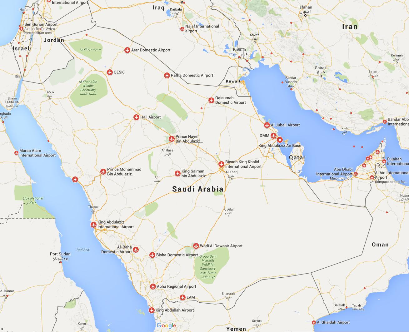 Airports in Saudi Arabia map