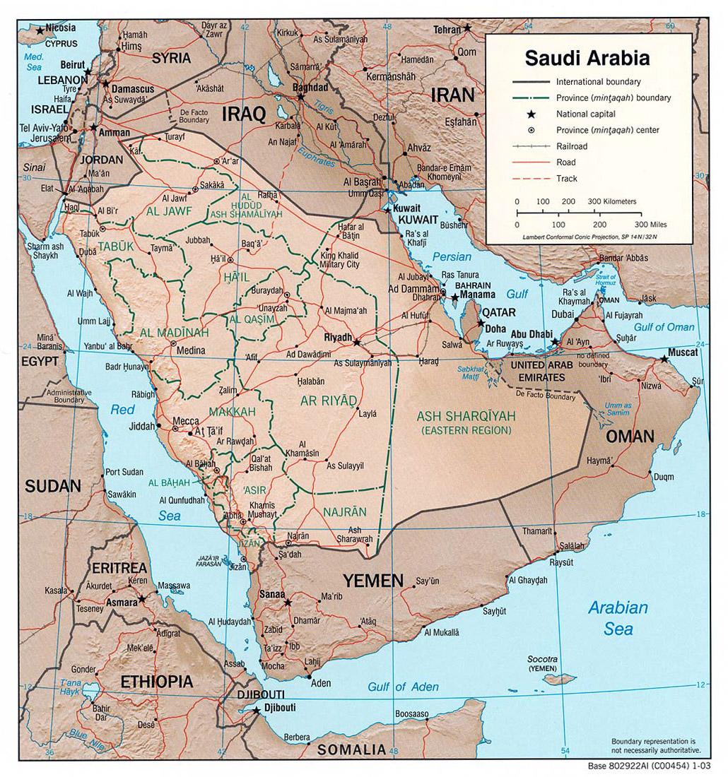 Saudi Arabia map with cities by road
